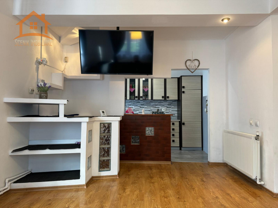 Detine centrala proprie alimentata cu gaz, boiler electric pentru apa calda in situatie de necesitate, aragaz, hota si frigider in zona de bucatarie, un smart tv cu diagonala generoasa in living.