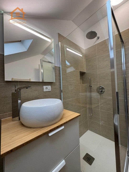 Deasemeni casa dispune si de un garaj la demisolul casei cu acces pe usa actionata cu telecomanda, zona in care este amplasata camera tehnica.