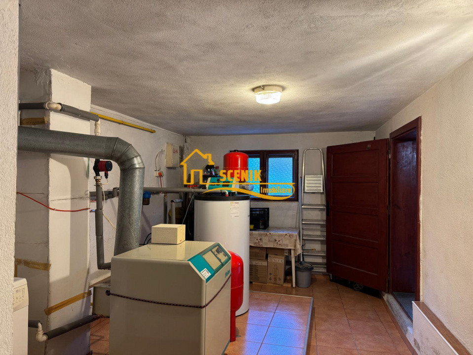 - zona tehnica in care este amplasata centrala cu alimentare pe gaz de 37 kw (cos exterior pentru evacuar) si deasemeni un boiler pentru apa calda de 200 litri, totodata in aceeasi zona regasim o toaleta model ''turcesc'', o masina pentru spalat haine si spatiu suficient pentru depozitare atat in incaperea tehnica cat si in garaj;