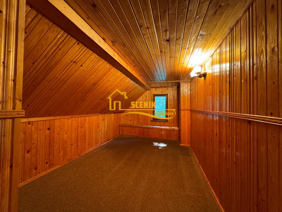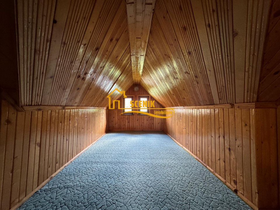 - Mansarda - regasim un nr de 5 incaperi amenajate atent cu lambriu, care momentan sunt nemobilate, incaperi care pot servi atat pentru activitati recreative, relaxare, de la geamurile fiecarei incaperi fiind vizibile frumoasele imprejurimi!